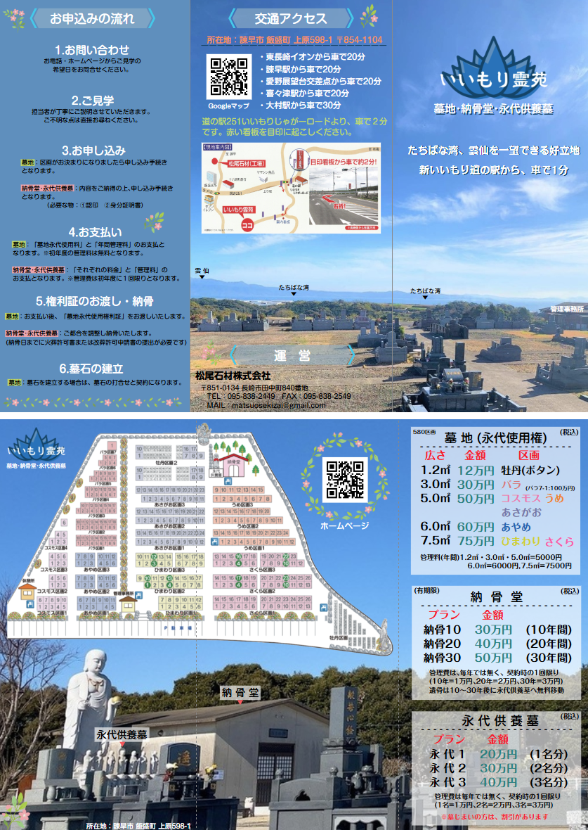諫早市飯盛町の高台にあり、たちばな湾、雲仙を一望できる霊園です。