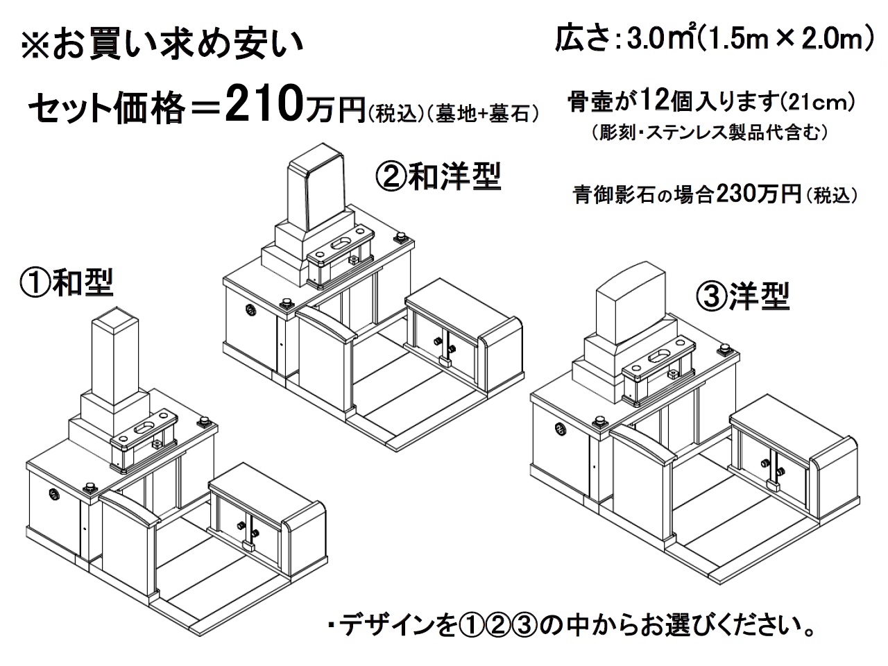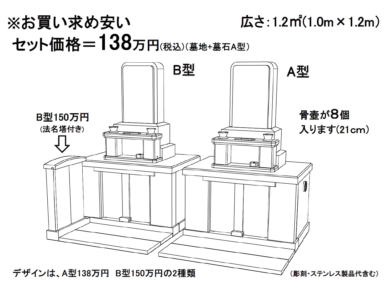 | 永代2 | 30万円 | 2万円 | 2名分の遺骨を納骨します |